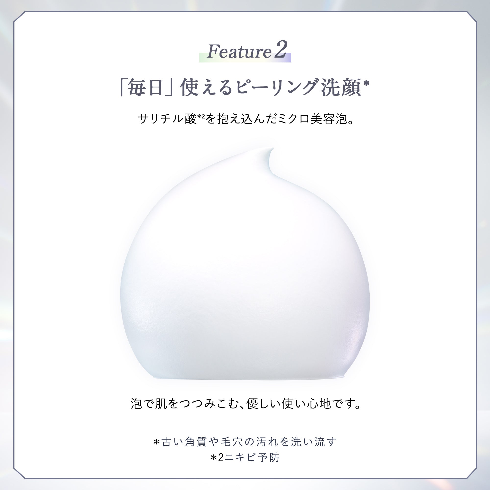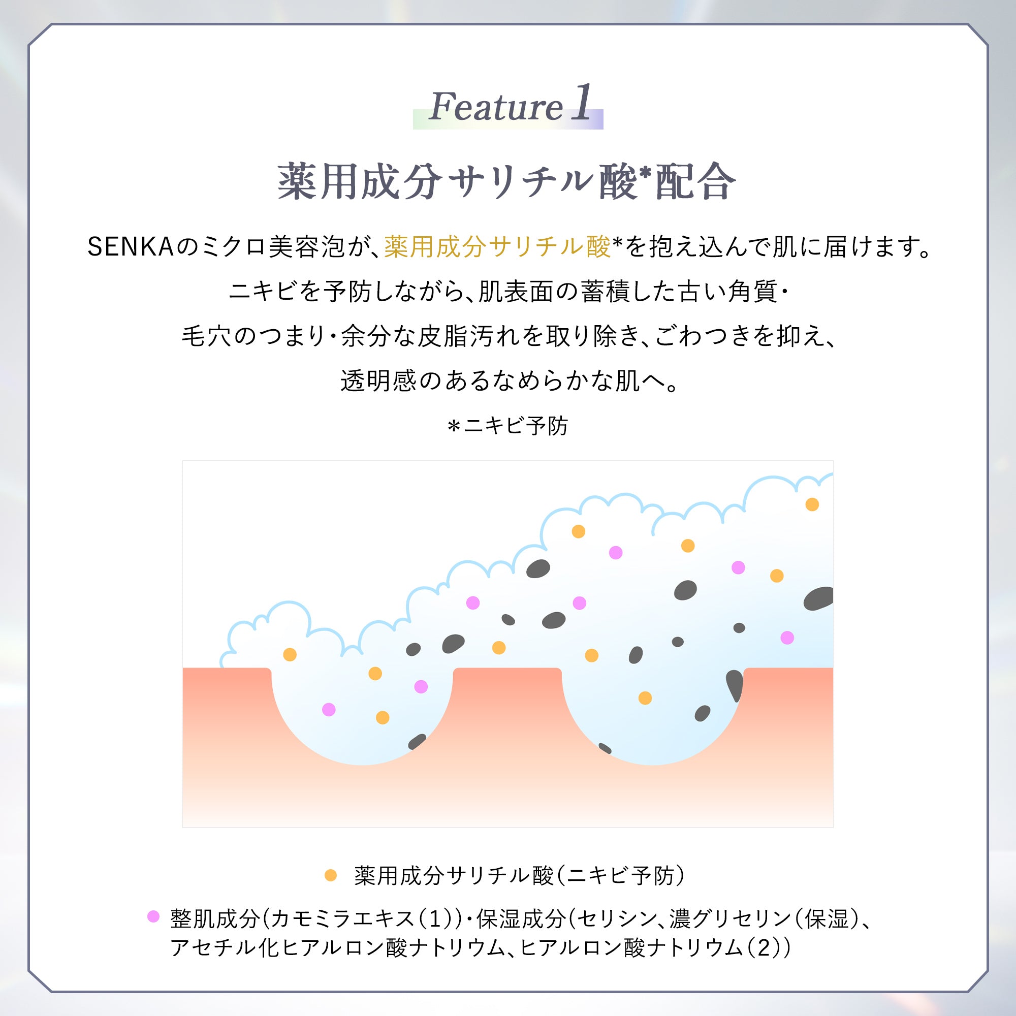 This beauty-foam peeling face wash from SENKA delivers medicated salicylic acid to help prevent acne through micro beauty bubbles that reach the skin. Washes away old keratin and pore impurities. Features an elegant, pleasant herbal-fruity fragrance. For a fresh, clear bare-skin look.