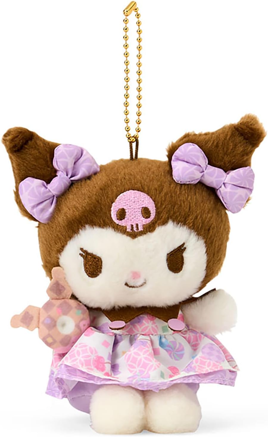 A soothing pastel design series with a subtle touch of Japanese style. The ribbon, dress, and the apple she holds feature gently connected Japanese-inspired motifs. Attach it to your bag or backpack and enjoy the cute charm.